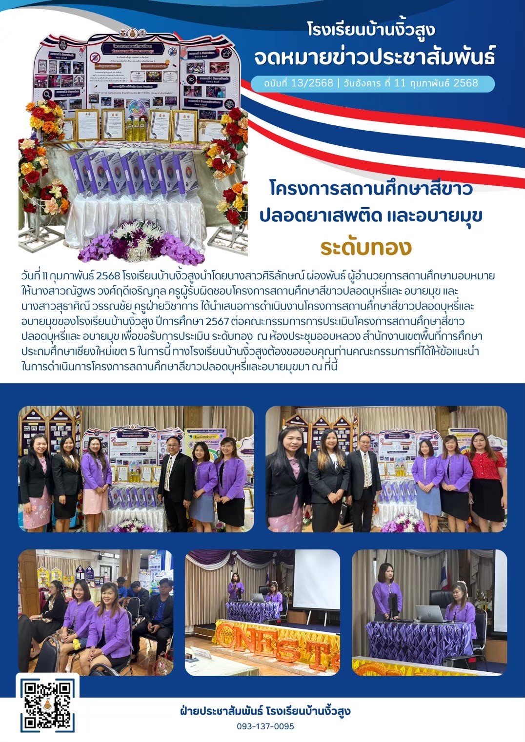 โรงเรียนบ้านงิ้วสูง เข้ารับประเมินโครงการสถานศึกษาสีชาว ปลอดบุหรี่และอบายมุข ระดับทอง ปีการศึกษา 2567 ณ สพป.ชม.5